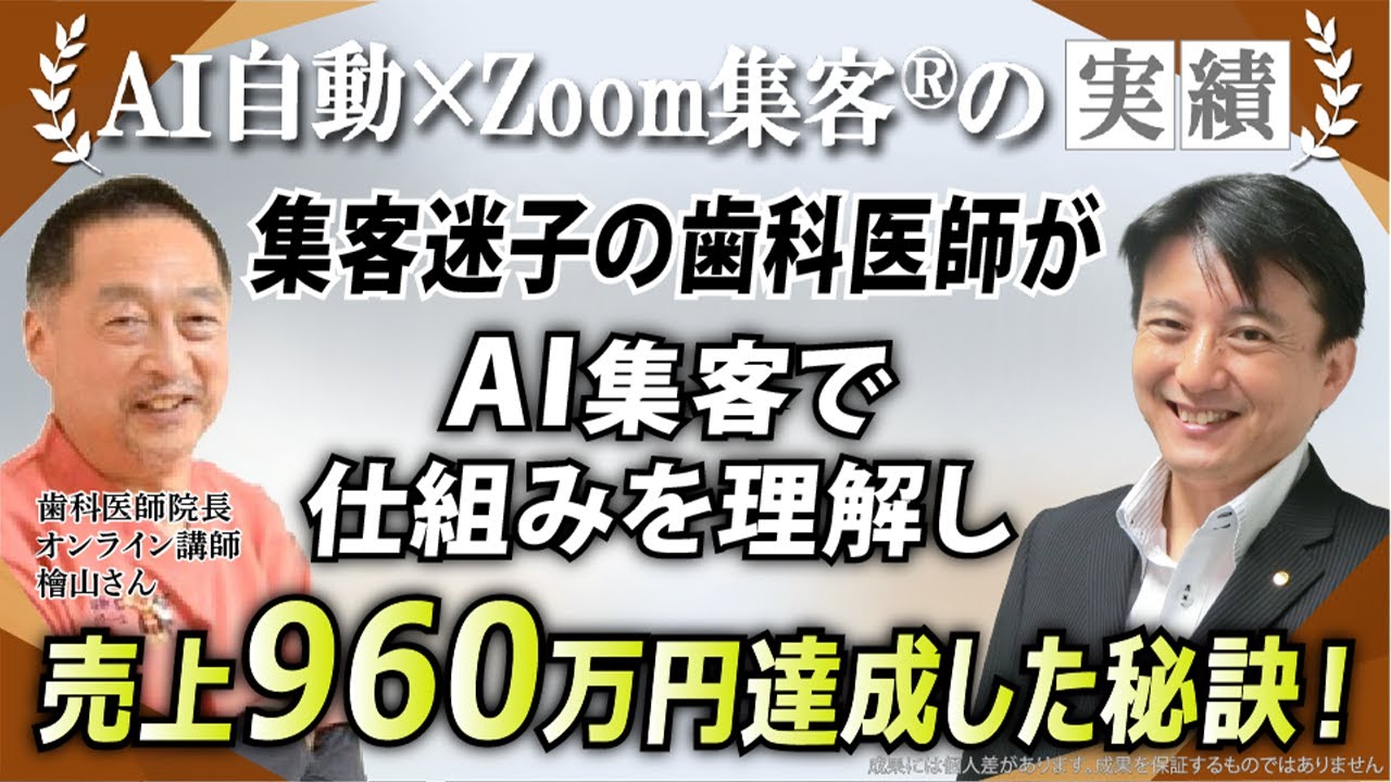 【70代 歯科医院の院長先生】売上が安定せず悩んでいました… Zoom集客®の学校で学びオンラインから集患して売上1000万円達成!