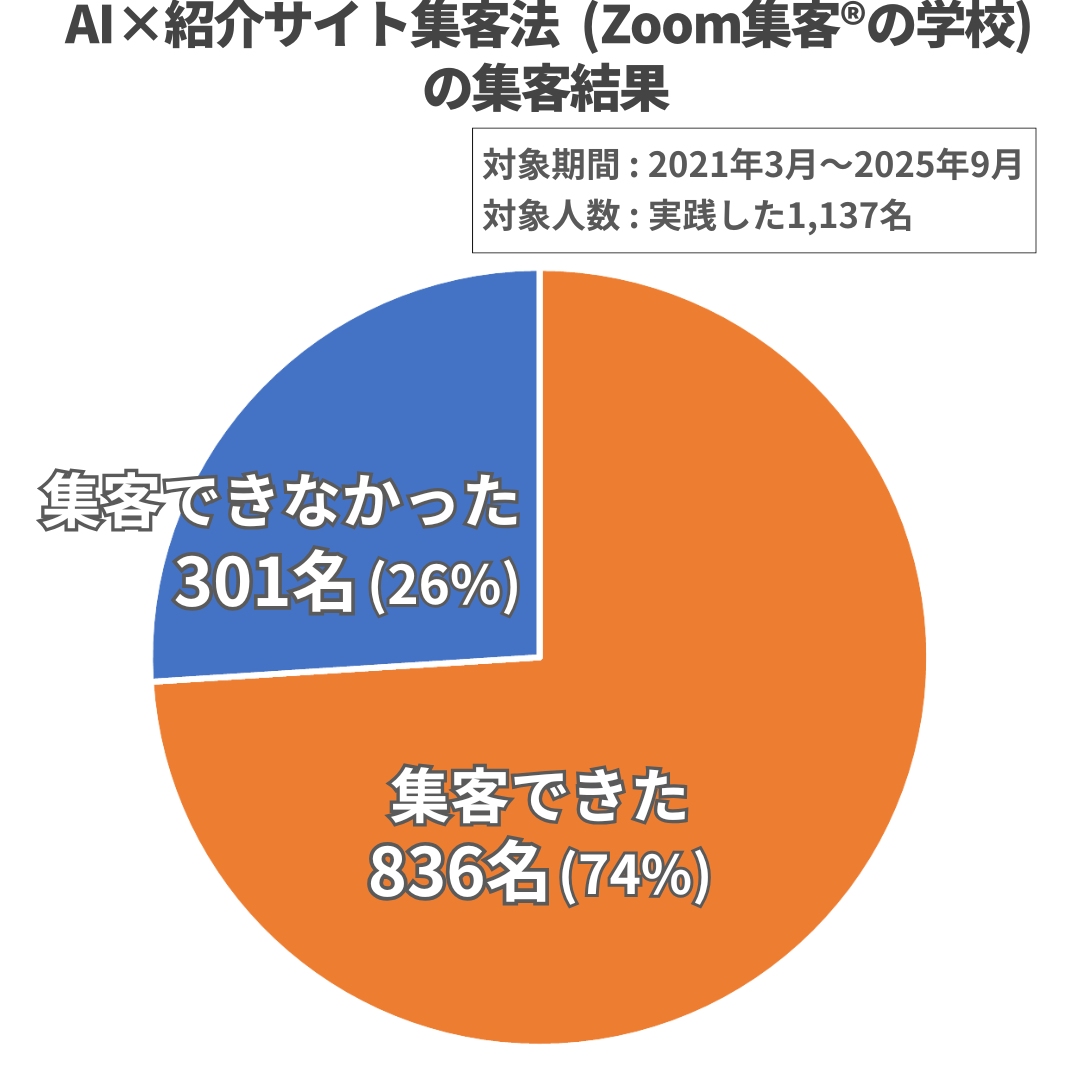 ※2021年3月~2025年9月に行われた『AI×紹介サイト集客法(Zoom集客®の学校)』を受講し、アンケートにお答えいただいた受講者1137名を対象にした調査である。