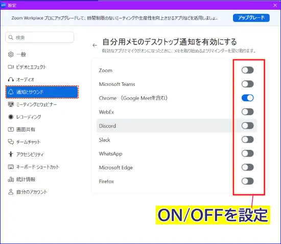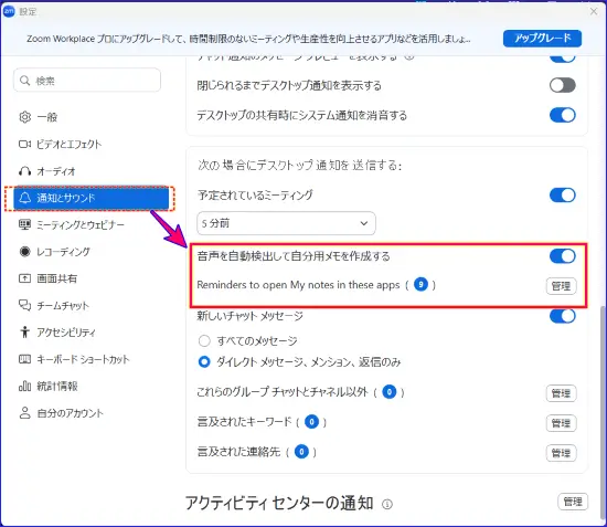 さらに驚きの機能として、Zoom以外のアプリが起動したときも、マイクがオンになったことを検知して「自分用メモ」を開始するよう通知してくれる機能があります。