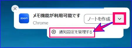 ※設定を見直したい場合は、「ノートを作成」の右にある「∨」をクリックすると設定画面を開くことができます。