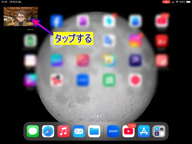 スマホ・タブレットでも、Zoomに参加した状態で画面共有を行えば、画像やアプリの画面を相手に見せることができます。
