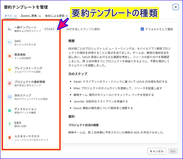 要約テンプレートは、複数用意されており、用途に応じてテンプレートを切り替えることもできます。